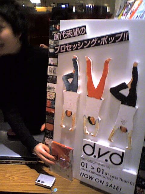 演奏時間20分のd.v.dを見逃さないように急ぎ足で会場に向かうと、意外に早めに着いた。コーネリアスとプラスチックスともなると、動員は多いですね。今日のd.v.dは三人ともスクリーンの後ろ。ドラム2人は、丸いお月様のようなライトの中でシルエットとなって浮かび上がり、ちょと幻想的。映像とドラムの仕組みが、解り易くなる様なデモっぽいものからはじまり、そこから曲に入ると、周りの人が何人か頷くのが見える。解ると、また一段と面白みが増すよね。映像も少しづつ進化してて、なるほろ〜って感じ。隣の楽屋(コーネリアス)に遊びに行って、ふと気がつくとそこに居た人全員が、私も含めボーダー着てて笑った!もしかして、衣装だった?(←んなことないですが)プラスチックスは、昔嵌りましたね〜。ライブも見たことありますよ。あの軽くてピコピコしたのが好きでしたが、今日はほとんどバンド!でした。満員電車のような客席状態に負け、楽屋のテレビで見ていると、ストーンズのような感覚に襲われました。大御所でしたね。