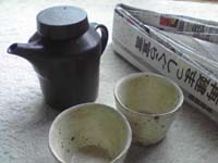 黒い食器をあまり持っていなくて、惹かれたのがこのポット。三苫さんのそば猪口も可愛い。 しかしそれ以上にココロ惹かれたのが、緩衝材として入っていた全ての新聞が、丁寧に蛇腹折りだったこと!けっして、ハリセンとは違いますよ。