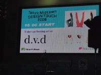 普段オシャレな所には縁がないのですが、今日は初MID TOWN。セキュリティーも厳しくて、控え室からトイレに行くのにも、係りの人がドアを開けてくれるので、なかなか動けません。映像はクッキリハッキリで綺麗。撮影もしょっちゅう注意されます。腕に腕章で問題解決。皆がリハーサルしてる間に、店内をブラリ。竹のコーナーが気になりました。竹篭を編んでる人はなんだか幽玄な感じ。割と肌蹴た感じの着物を着て、一瞬女子供か?と思うくらい。欲しいものがいっぱいあったけど、時間が無くて断念。本番はアナウンサーのイントロつきで、ガーンと始まる。高い天井に音が響いて気持ちいい。半分オープンエアーだね。それにしても、d.v.dは演奏する場所がバラエティに富んでますな。
