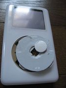 iPodを開いてホイール部分にたどり着くまでPCB外して電池外してホイールを固定しているプレート、これが強力に接着されてんだけどここまで外してやっとホイールのアッセンブリ。ふーっ・・・ってもんですよ。