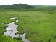 ここはミニ釧路湿原みたいな場所で、山の上にある展望台からコッタロ川の湿原がよく見える。こんな感じ。