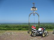 クローバーの丘と鐘とCB。いい天気だったけどここも寒かった。