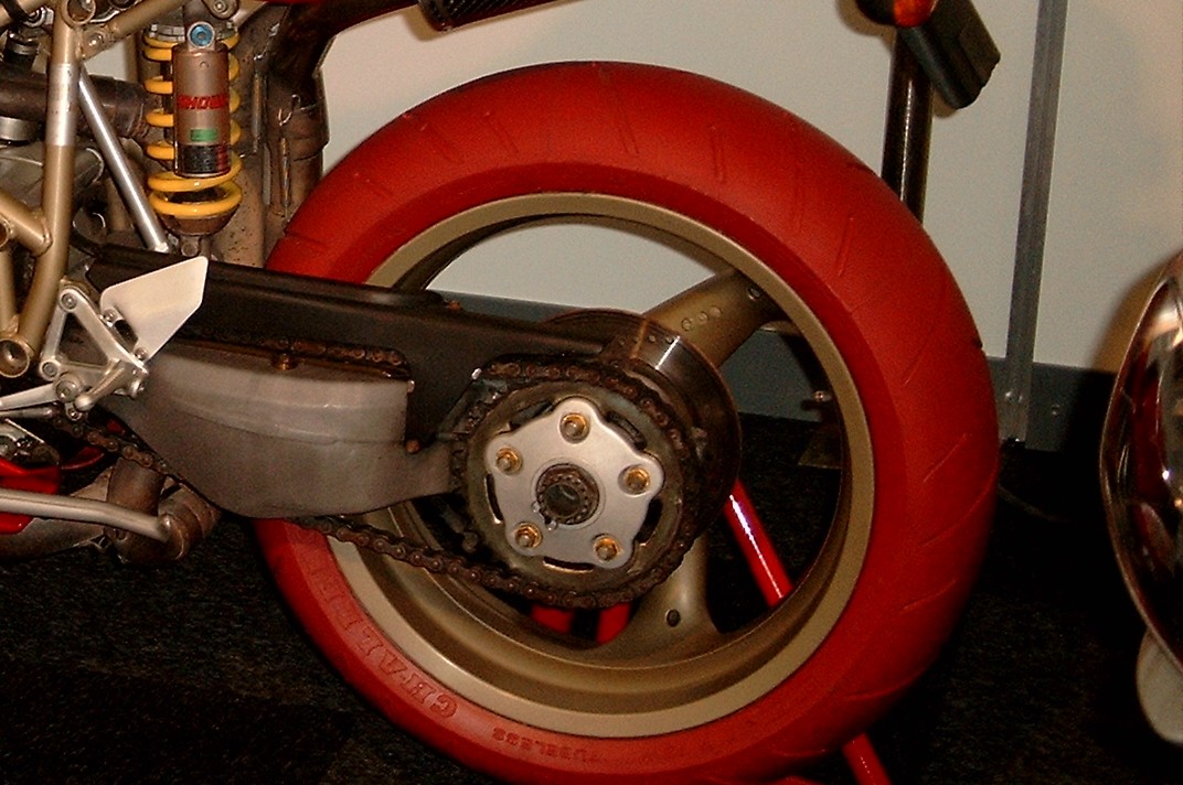 色がついたタイヤって時々話題になるんだけど、実際に見たことがなくてどんなものかと思っていたんだよね。そんなときに我らの赤いDucati superbikeに赤いタイヤをマウントしてくれた勇気ある燃えるハートをもった方がどこかにいてこんな写真をお見せできるのはこの上ない喜びと言うかなんと言うか・・・。