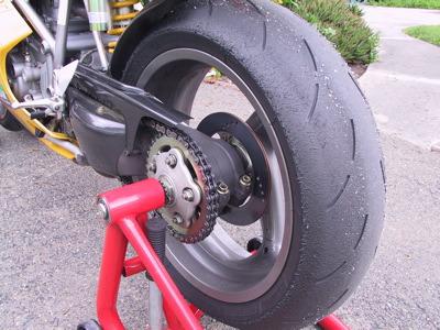 今日サーキット仕様から戻しているときに気がついたんだけど、ガソリンタンクの先端で、マスターキーシリンダーに当たる部分が擦れてペイントの下地がむき出しになるくらい消耗しているんだよね。同じSuperbikeのオーナーも同じ目に遭っているのか知らないけど、自分は減速Gをタンクを挟む事でこらえるからこの部分にすごく負担がかかっているんじゃないかと想像するんだけど、どうだろう?