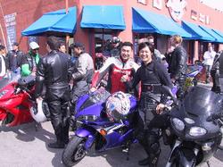 今日は2004年型のYamaha YZF-R1のマイクも来てた(上の写真)。彼は998も持っているので違いを聞くと、やっぱりサスペンションがもっと柔らかくて吸い付くように設定されているのとポジションがずいぶん楽ってことで公道だとずいぶん乗りやすいらしいってことだよ。(Duacti Superbikeと比べての話)