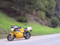 やっと晴れたので朝から748で走ってきた。まだ湿っている場所はあるけど気温も高いので前みたいに凍っていることはなかった。Page Millを上がってSkylineからAlice'sに着くとKTM dukeに乗るDevinとLindaと会ったんで一緒に84->Pescadero, Stageに行く。この辺りの道だと明らかにこういうmotardの方が早い、というかテクニックの問題かもね。
