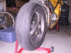 Trackday用のタイヤ(ミシュラン Pilot race H2)は後ろがボーズなんで交換。左側の一部分ばかり減っていたのはCold tearという現象かもしれないので気をつけないと行けない。どうやらThinderhillでこの現象が出るみたいで、他のライダーも似たようなタイヤになっていた。