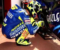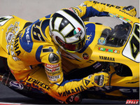 2004年シーズンはヤマハからMotoGPに出るチャンピオンのロッシの写真がいくつかここで紹介されてた。インタビューによれば実際にはまだ乗っていないようで、どうやら土曜日にこの新しいYZR-M1に乗るみたいだね。
