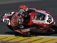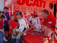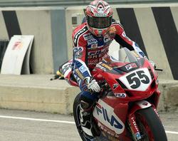 Superbike planetによれば、Ducati AustinのEric BostromはMugelloでDucati Fila teamのテストに参加して、同じバイクで一人だけミシュランタイヤ(WSBチームは全チームピレリ使用という規定)を使ったにもかかわらず思った程よいタイムが出なかった様子。初めて走るというハンデがあるので個人的には?だけど、同じDucatiでWorld supersportクラスに出ている上の写真の"Fonzi" ことLorenzo Lanzi選手を読んで来て走らせて見たらEricより1.5秒以上早く、彼もsuperbikeに乗るのは初めてっていうハンデもあったのにそれだけの結果を出したので、Ducatiは彼をAMA残り2戦で使ってみたいと思っているみたい。