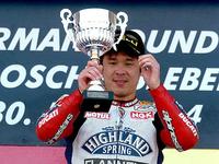 ノリックと言うと、知らない人は手品のミスターマリックかと思う(思わないって?)かもしれないけど、日本のトップGPライダーの一人で、世界で活躍している人なんだよね。去年(2003)はフル参戦(全戦に参加)できなくてファンも本人も悔しかったのですが、来シーズンはフル参戦すると本人のホームページで発表されてました。