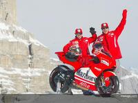 ここで2004年のデスモセディッチの写真がいろんな角度から見れるよ。16500rpmで230馬力も出るんだとか。そりゃスライドするわな。去年までアプリリアのスポンサーだったAliceがDucatiに来てるみたいだし、新しい外装は4分割できるようになってメカニックが作業しやすくなったとか、タンク、スイングアームが新しくなったとかそんな感じだね。エキゾーストパイプの出口付近のデザインもすっきりしたかな。