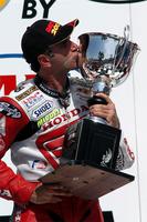 その第2レースではMotoGPから移動してきたスライドで人気のGary McCoyが優勝したんでこっちも話題だね。「ルーキーじゃないし、初めて勝ったわけじゃないぜ、Grandprixでも何勝かしたんだぜ。地元だし最低でもいい結果は欲しかったし、本音と言えばファンの前で勝ちたかったから今週末は本当に集中してたよ」なんていうコメント。