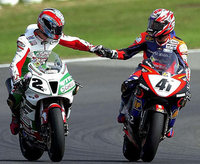 SuperstockのYamaha R1がSuperbikeとほとんど変わらない性能を発揮した話はちょっと前にしたけど、決勝でもその実力は健在で1、2フィニッシュだったみたい。3位にはこれも新型のKawasaki ZX-10Rに乗るニッキー・ヘイデンの兄弟達(Tom, Roger)が同じチームで3, 5位に入っていたので、ZX-10Rのデビューとしてはまずまずなのでは?