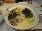 このご飯が温かくしてありまして、上のナムルに混ぜるのです。