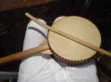 このバチは旅猫旦那さんの手作り。竹をあぶって曲げた微妙なカーブがすばらしい