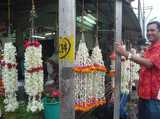 この店、奥に人がいっぱいいて、ひたすら花を糸に通して