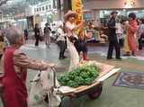 公設市場付近でちんどん屋さんに遭遇。