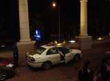 新郎新婦は飾りつけのついた車でホテルを後にします。