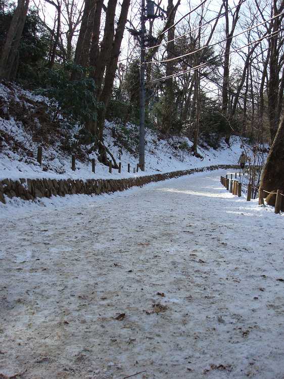 薬王院を越えて進みますと、雪。