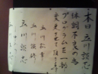 「本日 立川談志体調不良の為、プログラムを一部変更させて頂きます」