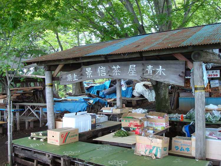 1時間ほどで頂上。きのこうどんをいただく。ユズが効いて美味。