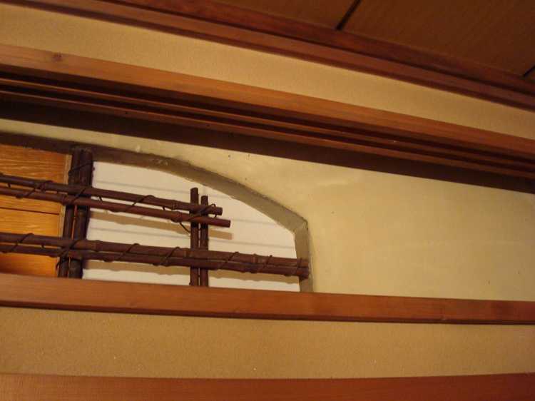 部屋を仕切る襖の上には土壁をくり抜いてこんな細工。