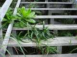 展望台への木で作られた階段に植物。