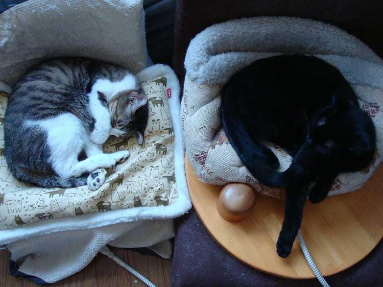左の寝床はふうの指定席で、右の寝床は代わる代わる皆様がお使いになるようですね。