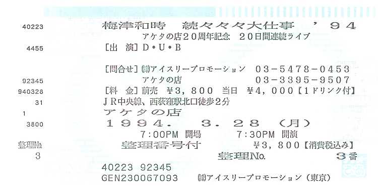 ちょうどその頃、梅津和時は「大仕事」というイベントをアケタで始めてた。確か初回は1991年。