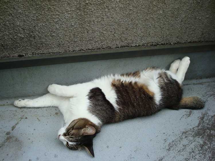 日陰ベランダはぺったりしてますよね。内臓を冷やしているのでしょうか。