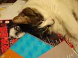 白夜映画祭チラシを枕に眠るクッキー