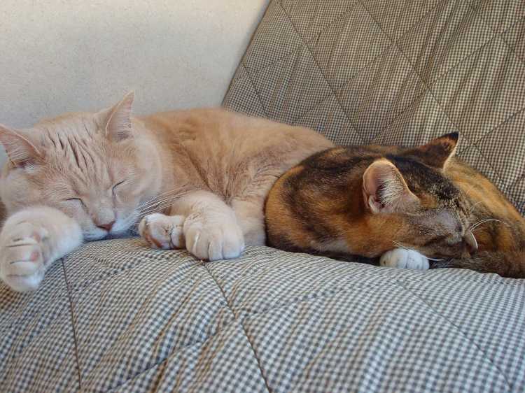 チャー&チャト相変わらずくっついて眠っております