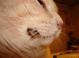 ・猫は歯に細菌がつくと異物と判断して押し出し排除しようとする。それで犬歯が長くなったように見えたり、歯が抜けたりする。