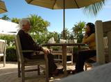 いつもの(そして最後の)朝食へ。毎日強かった風がやんでいたので、外のパラソル下の席へ。