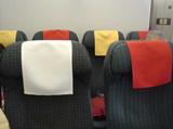 誰もいないビジネスクラスの席がよく見えます。どうせあいているんだから座らせてほしいものです、