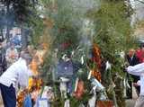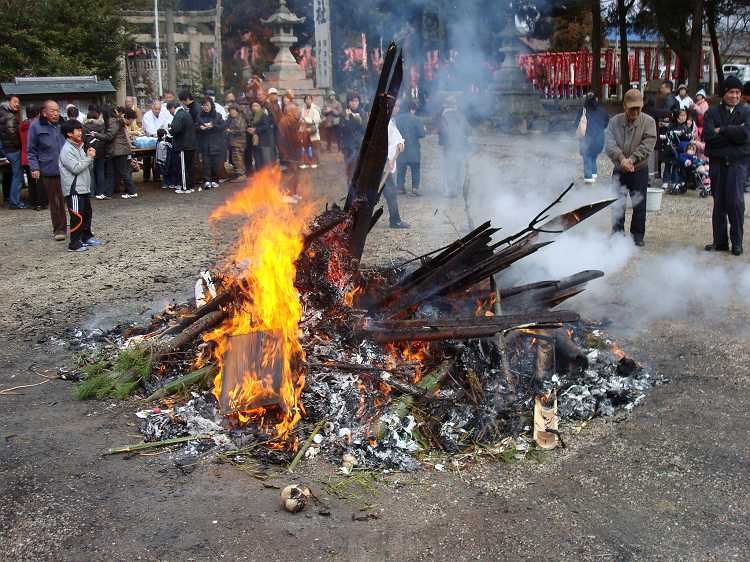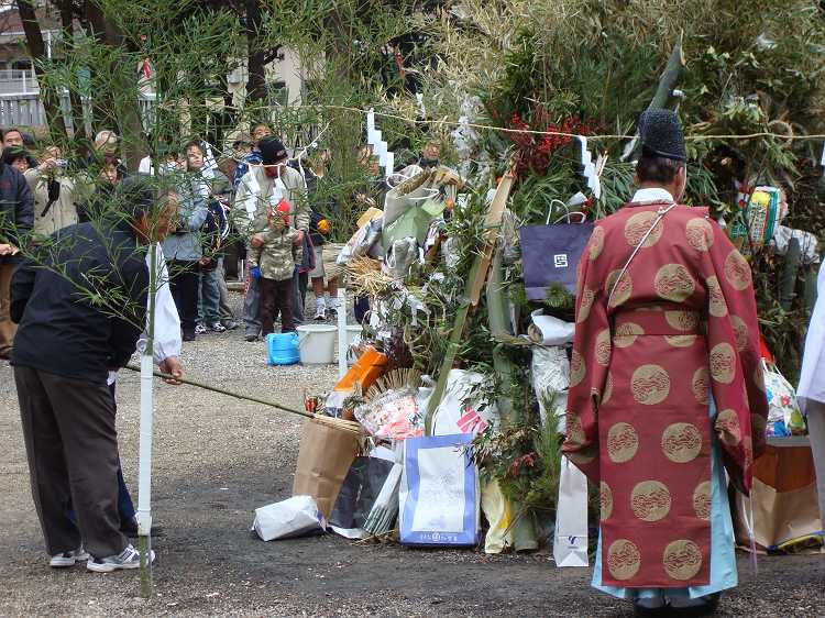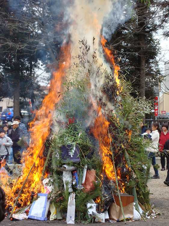 近くの神社でどんど焼が行なわれるというので行ってみる。昔はなかったよな、この行事。