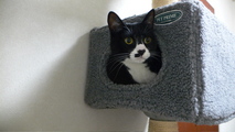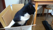 段ボールの囲まれてご満悦のイッチさん. 中でカリカリカリカリやってました.あまりの興奮っぷりに動きすぎて写真ブレブレです.