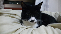 この写真を撮るために布団をめくったら"ぶにゃ〜"と軽く抗議されました. 起こしてすまん.
