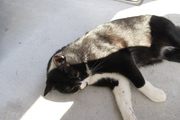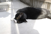 ベランダのごく一部の日が当たるところを占領するイッチさん. ・・・良く気づいたな.