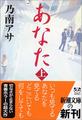 あなた(上)(下) | 乃南アサ (20060301読んだ) 乃南アサのあなた(上)(下) これも移動中時間があったんで買った本なんですが,ホラーと言うよりは,犯人捜しの要素が多いような気がします.僕としては. 文体も面白い感じになっていて,一人称なんだけど別の人の視点で心理状況が語られるという,ちょっと途中で混乱しかけました. 前の記事 次の記事 コメント コメントする コメントの投稿 コメントの返信 コメント (スタイル用のHTMLタグを使えます) 名前 電子メール URL サインイン情報を記憶