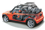 2台目の車を手放した僕は駅前に引っ越して交通の便が良くなったりしたので,しばらく車のことなど忘れかけていたのですが,そんなある日ネットサーフィンをしていると"○○ショーにMINIのオープンカー出品"みたいな記事が出ていまして(調べてみたらこれ2004年4月頃らしい),写真を見たらこれまたかわいい,とてもかわいい(2回言ってみた).すぐさまに旧知のT氏(学生時代の先輩)にメールをしたところ"あー良いねぇあれ"とすでにチェック済みの様子で"でもあのロールバーが気に入らん"と言うコメントもいただきましたが,僕は見れば見るほど”欲しい”とか思い始めてしまい,"いつ発売かなー"とか”値段いくらかなー”とか調べ始めたのですが,どうやら日本での発表はまだで2004年9月になるらしい,値段は普通のMINI Cooperが250万くらいなんでそれ以上になるらしいとそんなことだけわかったところで終わりました.