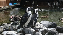 翌朝現地では懸念された雨も降らず,9時ちょっと過ぎに掛川花鳥園に着いたのですが,他の客はあまり見あたらず,"あれ?休み?"とか思ったのですが,どうやらスロースタートの施設らしく客はその後続々と集まってきました.ここで僕らは無事にペンギン撮影の整理券(\300)を入手しまして,園内にはいるとそこにはいきなりペンギンが放り出されていましてちょっと拍子抜け.(もっと仰々しいと思ってた)