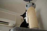 一心不乱に爪を研ぎ続けるイッチさん. あまりの必死さに思わず笑っちゃいますが.
