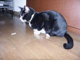 服に付いていた,プラスチックの留め具をずーっと追いかけ回していました.