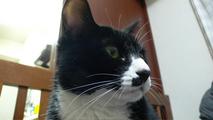 夜目が覚めたらイッチさんはベッドのヘッドボードの上を楽しそうに歩いていました.