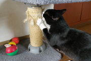 かなりぼろぼろになってしまっているキャットタワー(の一番下)