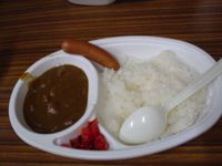 ↓山小屋での夕食は、定番のカレー。