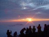 幸運にも天候に恵まれ、ご来光を拝む。