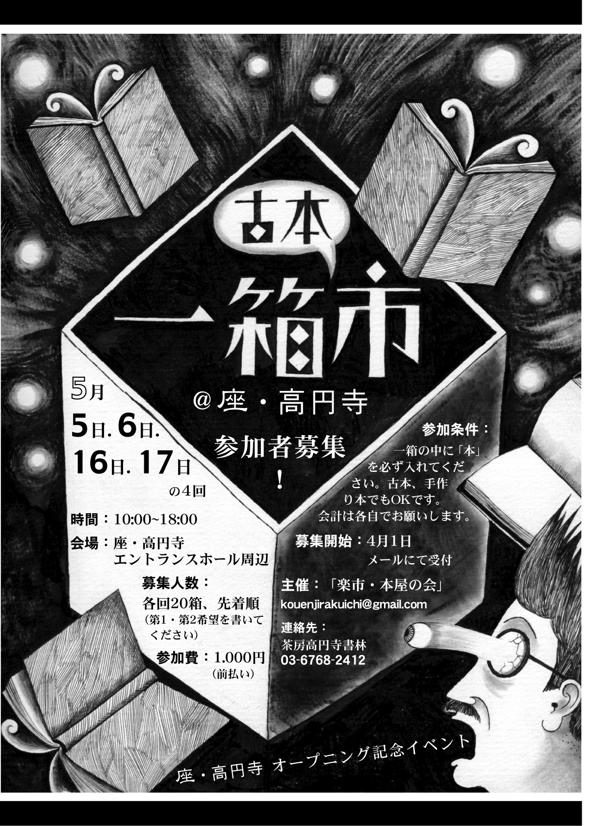 一箱古本市は、まだ多少、余裕があるようですよ。ご希望の方、ぜひ問い合わせてみてくださいね。