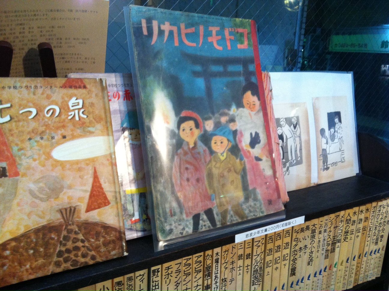 ↑一番上にあるのは、戦前の絵雑誌「コドモノヒカリ」表紙絵は中尾彰。下のほうに見えています岩波少年文庫は200円(初版など、発行当初のものは除きます)。